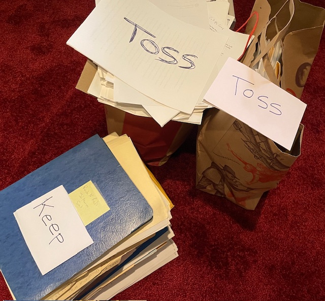 For the past few weeks, I’ve been sorting through multiple boxes filled with thirty years’ worth of old notes and manuscripts. To determine if a manuscript belongs in the “keeper” pile or the “toss” one, I have to review it. I’ve spent so much time reading old short stories and partially written novels that I’ve lost huge chunks of the day.